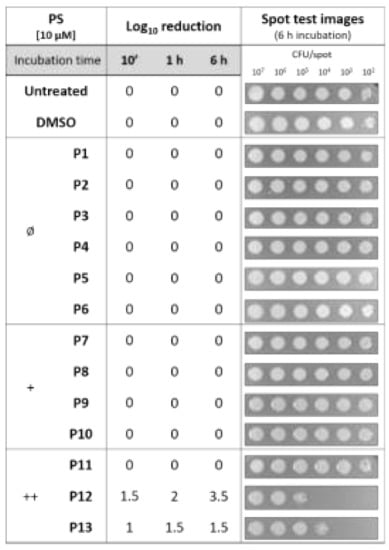 - Sułek, A.; Pucelik, B.; Kobielusz, M.; Barzowska, A.; Dąbrowski, J.M. Photodynamic Inactivation of Bacteria with Porphyrin Derivatives: Effect of Charge, Lipophilicity, ROS Generation, and Cellular Uptake on Their Biological Activity In Vitro. Int. J. Mol. Sci. 2020, 21, 8716. [Google Scholar] [CrossRef]