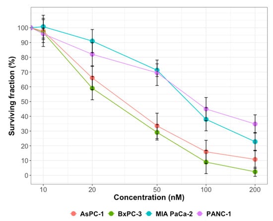 | PANC-1 | 22.26 ± 1.69 | 25.03 ± 1.56 |