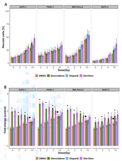 | Cell Line | Treatment | Necrotic Cells (%) at 10 Gy |