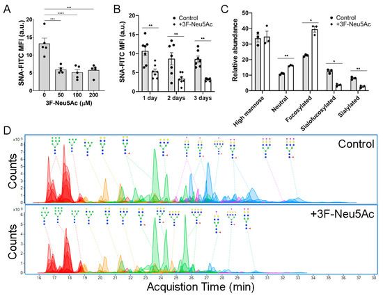 2.2. 3F-Neu5Ac Effectively Inhibits Sialylated N-Glycans in MSCs