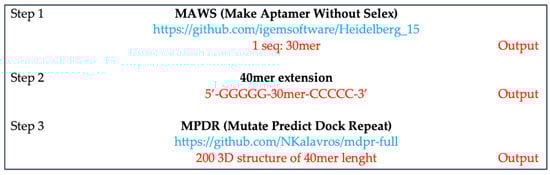 The design of the library and selection are the main critical steps for the generation of functional aptamers. In this regard, the computational approach represents a powerful tool for the prediction and validation of aptamers in silico [35].
