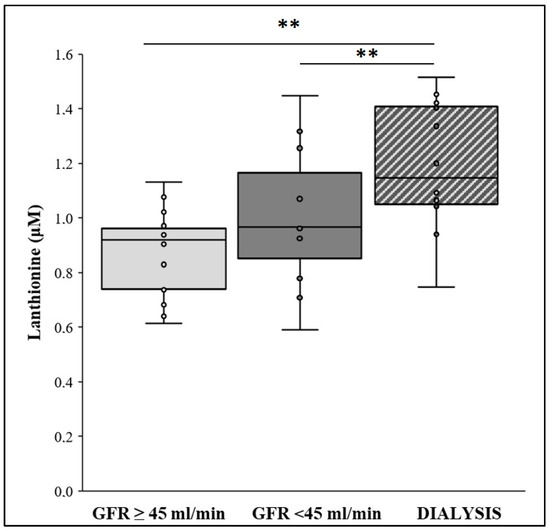 - Perna, A.F.; Zacchia, M.; Trepiccione, F.; Ingrosso, D. The Sulfur Metabolite Lanthionine: Evidence for a Role as a Novel Uremic Toxin. Toxins 2017, 9, 26. [Google Scholar] [CrossRef] [Green Version]