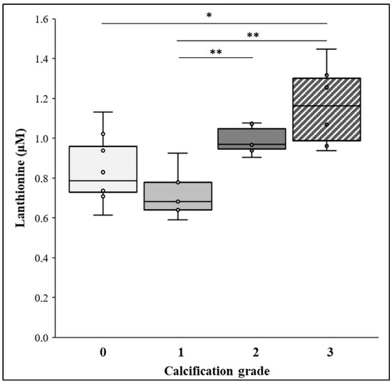 2.1. Lanthionine Concentration Is Increased in CKD and Hemodialysis Patients and in Higher VC Grades