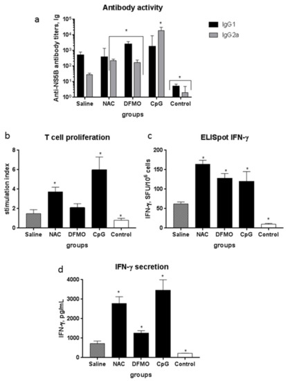 2.3. NAC and DFMO Potentiate Immune Response of Mice to the HCV NS5B Protein