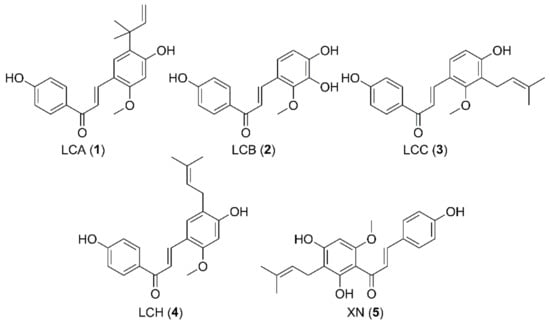 Han, F.; Xiao, Y.; Lee, I.-S. Microbial Conjugation Studies of Licochalcones and Xanthohumol. Int. J. Mol. Sci. 2021, 22, 6893. https://doi.org/10.3390/ijms22136893