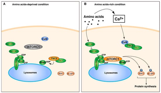 - Takahara, T.; Amemiya, Y.; Sugiyama, R.; Maki, M.; Shibata, H. Amino acid-dependent control of mTORC1 signaling: A variety of regulatory modes. J. Biomed. Sci. 2020, 27, 1–16. [Google Scholar] [CrossRef] [PubMed]