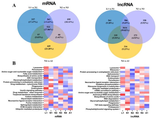 2.2. Differential Expression of lncRNAs in the Molting Process of Different Development Stages