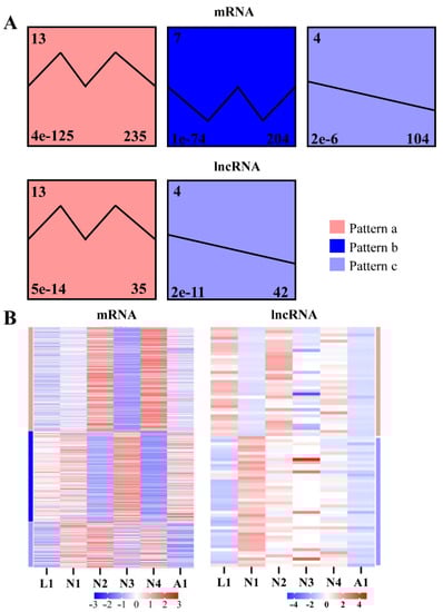 2.3. Different Expression Patterns of lncRNAs in Different Molting Processes from Larva to Adult