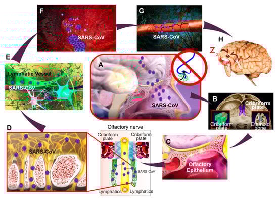 - Burks, S.M.; Rosas-Hernandez, H.; Alenjandro Ramirez-Lee, M.; Cuevas, E.; Talpos, J.C. Can SARS-CoV-2 infect the central nervous system via the olfactory bulb or the blood-brain barrier? Brain Behav. Immun. 2021, 95, 7–14. [Google Scholar] [CrossRef]