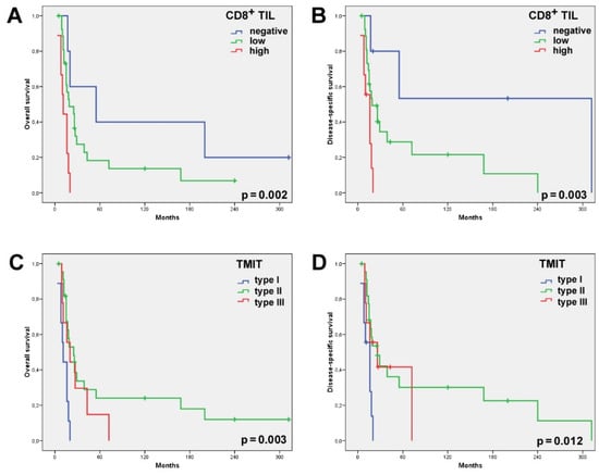 2.2. CD8+ TILs and Correlation with the Clinical and Survival Data