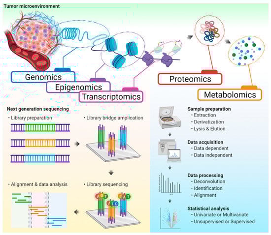 Several omics platforms that provide high-throughput information for biological understanding have been applied to study cancer immunotherapy (Figure 1). In this section, we will deliberate about how these approaches have contributed to the development of ICIs and how they have given insights for future studies involving cancer immunotherapy.