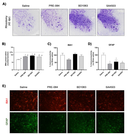 2.3. Sig-1R Ligands Enhance Preservation of MNs after Rhizotomy