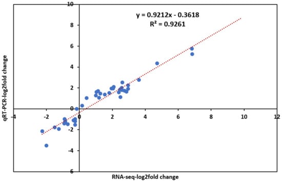 2.7. Validation of DEGs by Quantitative Real-Time PCR (qRT-PCR)