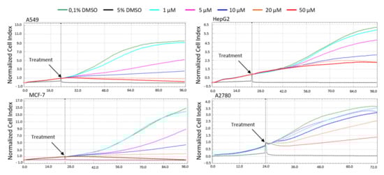 4.3. Screening for Antiproliferative Activity Using the xCELLigence System