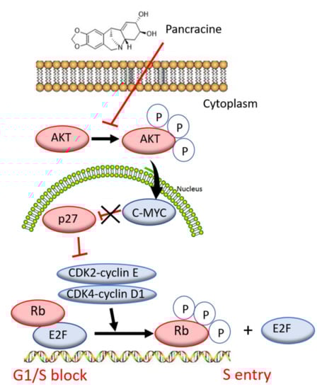 Figure 10 shows the schematic representation of proposed AKT/p27/pRb upstream signaling events involved in the antiproliferative activity of pancracine against A549 lung adenocarcinoma cells.
