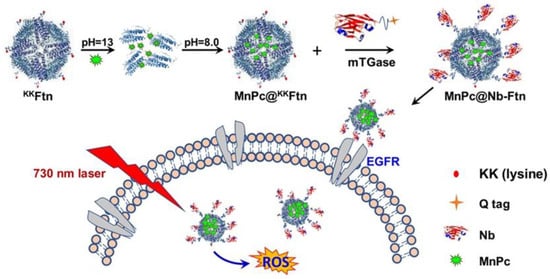 - Liu, M.; Zhu, Y.; Wu, T.; Cheng, J.; Liu, Y. Nanobody-ferritin conjugate for targeted photodynamic therapy. Chemistry 2020, 26, 7442–7450. [Google Scholar] [CrossRef]