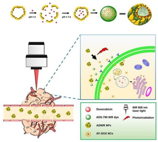 - Lin, C.Y.; Shieh, M.J. Near-infrared fluorescent dye-decorated nanocages to form grenade-like nanoparticles with dual control release for photothermal theranostics and chemotherapy. Bioconjug. Chem. 2018, 29, 1384–1398. [Google Scholar] [CrossRef]
