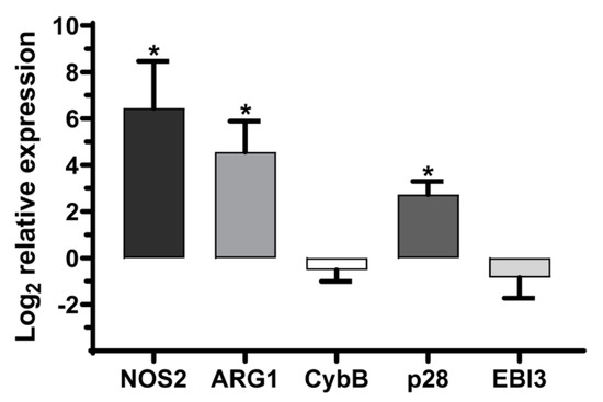 - Kraft, J.D.; Horzempa, J.; Davis, C.; Jung, J.-Y.; Peña, M.M.O.; Robinson, C. Neonatal macrophages express elevated levels of interleukin-27 that oppose immune responses. Immunology 2013, 139, 484–493. [Google Scholar] [CrossRef] [PubMed]