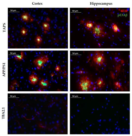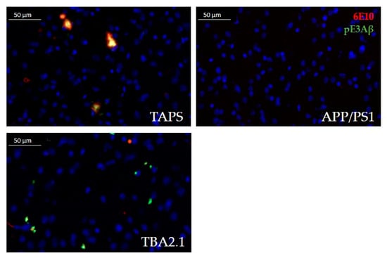 - Frost, J.L.; Le, K.X.; Cynis, H.; Ekpo, E.; Kleinschmidt, M.; Palmour, R.M.; Ervin, F.R.; Snigdha, S.; Cotman, C.W.; Saido, T.C.; et al. Pyroglutamate-3 Amyloid-β Deposition in the Brains of Humans, Non-Human Primates, Canines, and Alzheimer Disease–Like Transgenic Mouse Models. Am. J. Pathol. 2013, 183, 369–381. [Google Scholar] [CrossRef] [PubMed]