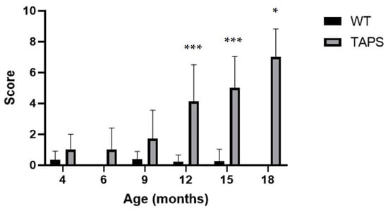 2.2. TAPS Mice Show Phenotypic Alterations in the SHIRPA and Open Field Tests