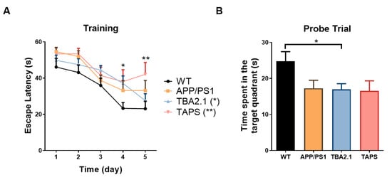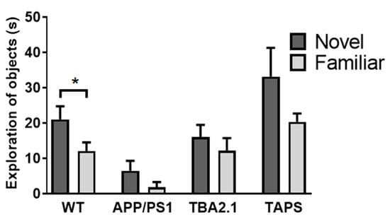 2.3. TAPS Mice Develop Cognitive Deficits in Different Behavioral Tests