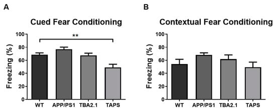 - Barnes, P.; Good, M. Impaired Pavlovian cued fear conditioning in Tg2576 mice expressing a human mutant amyloid precursor protein gene. Behav. Brain Res. 2005, 157, 107–117. [Google Scholar] [CrossRef]
