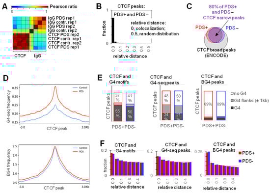 2.1. G4s Colocalize with CTCF-Bound Sites in the Genome and Interact with CTCF In Vitro
