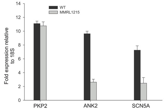 Expression profile of genes PKP2, ANK2 and SCN5A obtained using real-time PCR.