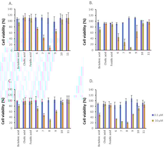 - Wiemann, J.; Heller, L.; Perl, V.; Kluge, R.; Ströhl, D.; Csuk, R. Betulinic acid derived hydroxamates and betulin derived carbamates are interesting scaffolds for the synthesis of novel cytotoxic compounds. Eur. J. Med. Chem. 2015, 106, 194–210. [Google Scholar] [CrossRef] [PubMed]