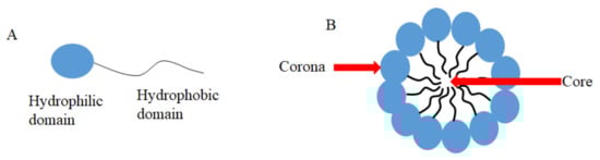 Micelles are aggregates of surfactants or block polymers self-assembled in water solution. They are used as DDSs and formed by a hydrophilic domain named corona and a hydrophobic domain called core (Figure 1) [91], which stays in contact with hydrophobic drugs such as CUR [91]. Micelles have low toxicity, biocompatibility, and sustained release, which makes them an attractive DDS to carry CUR and to be used in medical applications [91]. Antimicrobial studies with CUR-loaded micelles are summarized in Table 2.