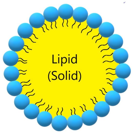 Solid lipid nanoparticles (SLN, Figure 3, Table 3) are a modern type of lipid-based carrier composed by solid biodegradable lipids and spherical solid lipid particles. SLNs are water colloidal or aqueous surfactant solution systems [103]. SLNs have advantages such as biocompatibility, biodegradability, greater drug absorption, and drug retention [18,103], thus they are an interesting system to carry CUR [14]. Currently, SLNs have become popular because they are used as carriers for COVID-19 vaccines based on RNA vaccine technology (Moderna and Pfizer–BioNTech).