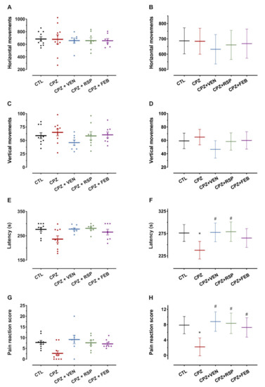 where, Mx is the mean value for CPZ when compared vs. CTL, or CPZ + VEN, CPZ + RSP and CPZ + FEB groups when compared vs. CPZ; My is the mean value foreither CTL or CPZ.