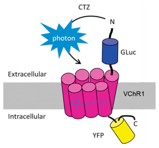- Berglund, K.; Clissold, K.; Li, H.E.; Wen, L.; Park, S.Y.; Gleixner, J.; Klein, M.E.; Lu, D.; Barter, J.W.; Rossi, M.A.; et al. Luminopsins integrate opto- and chemogenetics by using physical and biological light sources for opsin activation. Proc. Natl. Acad. Sci. USA 2016, 113, E358–E367. [Google Scholar] [CrossRef] [Green Version]