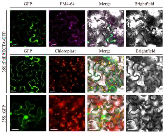2.1. Expression Pattern of PdERECTA and Subcellular Localization