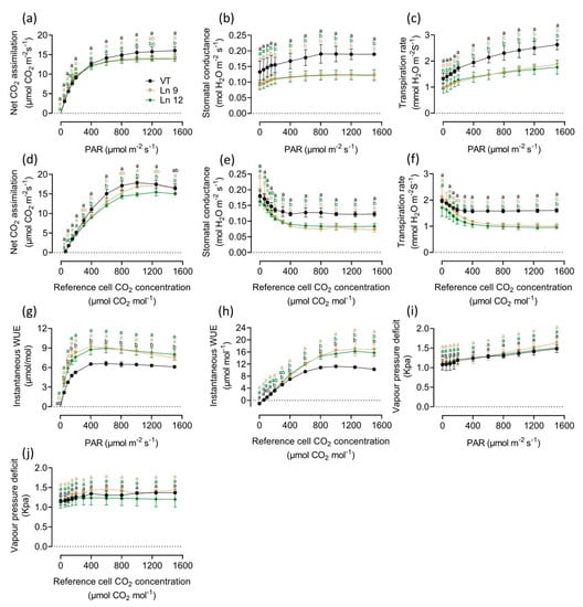 4.9. Leaf Instantaneous Gas Exchange Analysis