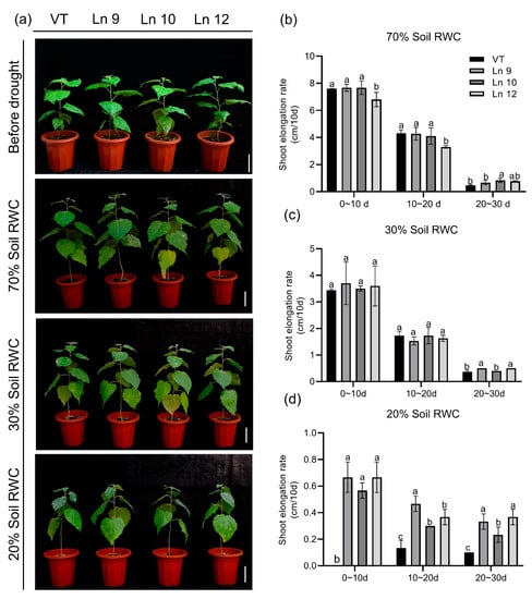 2.5. PdERECTA Conferred Enhanced Drought Tolerance to Poplar under Long-Term Water Deficit