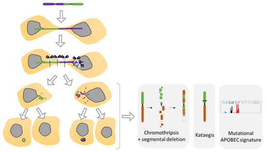 - Zhang, C.Z.; Spektor, A.; Cornils, H.; Francis, J.M.; Jackson, E.K.; Liu, S.; Meyerson, M.; Pellman, D. Chromothripsis from DNA damage in micronuclei. Nature 2015, 522, 179–184. [Google Scholar] [CrossRef]