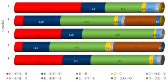 2.2.2. Hirshfeld Surface Analysis of the Complexes