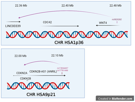 - Nakaoka, H.; Gurumurthy, A.; Hayano, T.; Ahmadloo, S.; Omer, W.H.; Yoshihara, K.; Yamamoto, A.; Kurose, K.; Enomoto, T.; Akira, S.; et al. Allelic Imbalance in Regulation of ANRIL through Chromatin Interaction at 9p21 Endometriosis Risk Locus. PLoS Genet. 2016, 12, e1005893. [Google Scholar] [CrossRef]