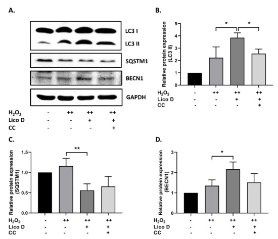 3.2. Lico D Restored the Impaired Autophagy via AMPK Activation under Oxidative Stress