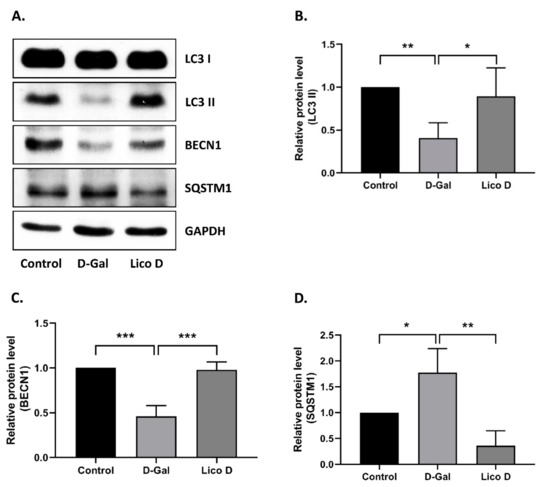 2.7. Lico D Activates Autophagy in D-Gal Induced Aging Mice Heart Tissue