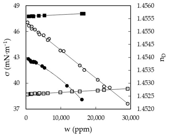 | σ (mN·m−1) | 47.75 | 2.008 × 10−5 | 0.9932 | 38.72 | 2.201 × 10−5 | 0.9929 | |