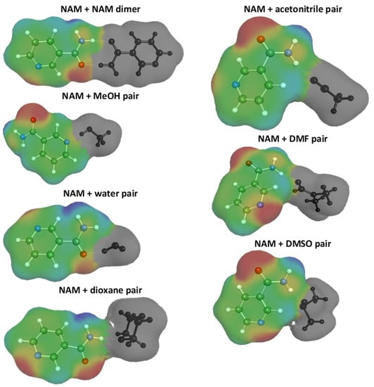 Cysewski, P.; Przybyłek, M.; Kowalska, A.; Tymorek, N. Thermodynamics and Intermolecular Interactions of Nicotinamide in Neat and Binary Solutions: Experimental Measurements and COSMO-RS Concentration Dependent Reactions Investigations. Int. J. Mol. Sci. 2021, 22, 7365. https://doi.org/10.3390/ijms22147365