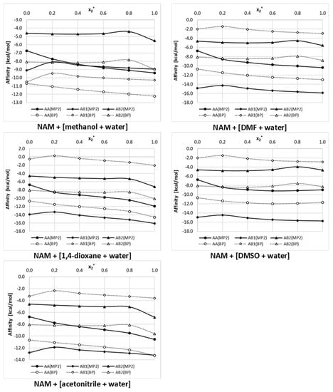 2.4. Intermolecular Interactions of Nicotinamide in Aqueous Organic Solvent Mixtures