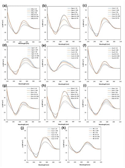 - Kimura, S.; Tahira, Y.; Ishibashi, T.; Mori, Y.; Mori, T.; Hashimoto, J.; Sakaguchi, K. DNA Repair in Higher Plants; Photoreactivation Is the Major DNA Repair Pathway in Non-Proliferating Cells While Excision Repair (Nucleotide Excision Repair and Base Excision Repair) Is Active in Proliferating Cells. Nucleic Acids Res. 2004, 32, 2760–2767. [Google Scholar] [CrossRef] [PubMed] [Green Version]