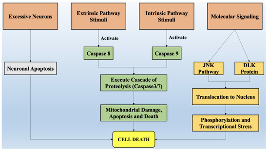 2.3. Programmed Destruction of Neurons by the Degeneration of Axons