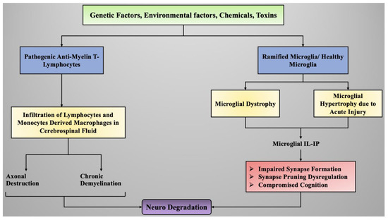 - Esiri, M.M. The interplay between inflammation and neurodegeneration in CNS disease. J. Neuroimmunol. 2007, 184, 4–16. [Google Scholar] [CrossRef] [PubMed]