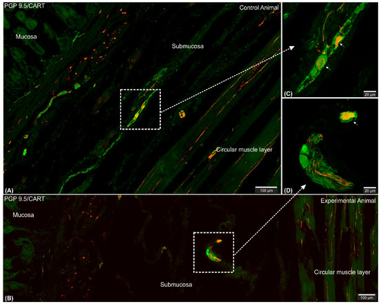 2.1. CART-Immunofluorescence in the Structures of Enteric Nervous System