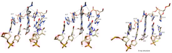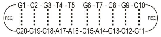 - Kozerski, L.; Mazurek, A.P.; Kawęcki, R.; Bocian, W.; Krajewski, P.; Bednarek, E.; Sitkowski, J.; Williamson, M.P.; Moir, A.J.; Hansen, P.E. A nicked duplex decamer DNA with a PEG(6) tether. Nucleic Acids Res 2001, 29, 1132–1143. [Google Scholar] [CrossRef][Green Version]