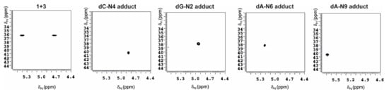 - Naumczuk, B.; Bocian, W.; Sitkowski, J.; Kawęcki, R.; Kozerski, L. Solvent-dependent regioselectivity of 2′-deoxyadenosine alkylation by 9-aminomethyl derivatives of SN38. New J. Chem. 2019, 43, 18975–18978. [Google Scholar] [CrossRef]
